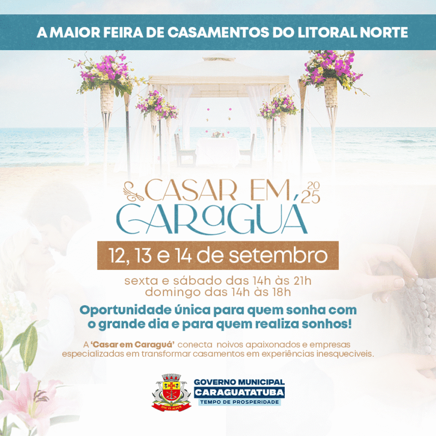 Mais do que uma feira, o CASAR EM CARAGUÁ é uma verdadeira vitrine do que a cidade tem de melhor. A iniciativa faz parte da estratégia da Prefeitura de Caraguatatuba para fortalecer o turismo de eventos e impulsionar setores como hotelaria, gastronomia e serviços, colocando o município de vez no mapa dos casamentos de destino.