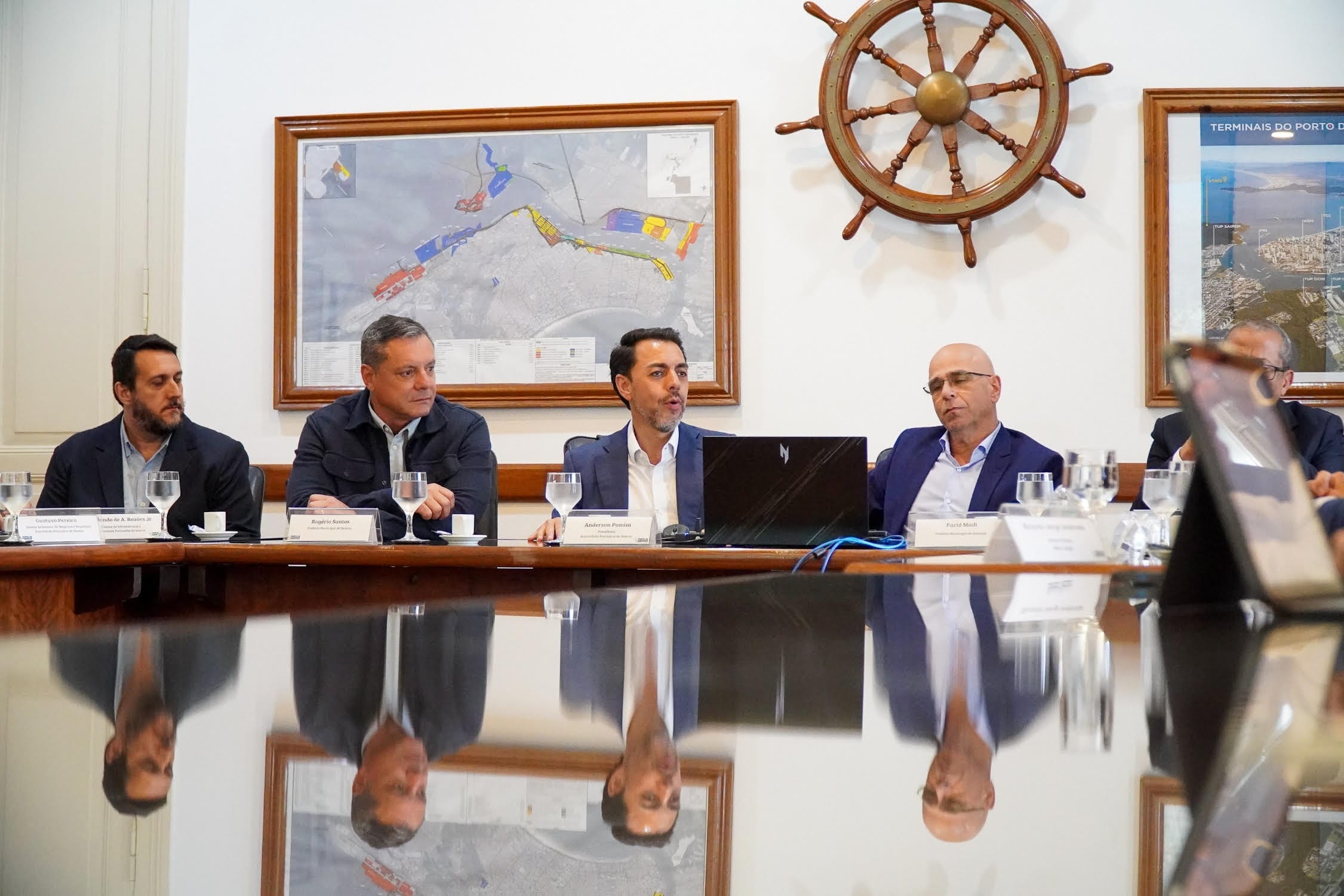 A Autoridade Portuária de Santos (APS) recebeu na quinta-feira (09), os prefeitos de Santos e Guarujá, Rogério Santos (Republicanos) e Farid Madi (PODE), o deputado federal Paulo Alexandre Barbosa (PSDB), coordenador da Comissão Externa para monitorar as obras do Túnel Santos-Guarujá – da Câmara dos Deputados -, e representantes da empresa Mota-Engil, vencedora do leilão de implantação do túnel Santos-Guarujá.