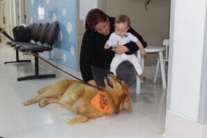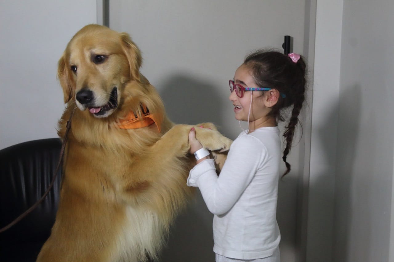 Enquanto aguardava atendimento por causa de uma gripe, a pequena Elisa Ventura, de oito anos, aproveitou o tempo de espera do jeito que mais gosta. Apaixonada por animais, ela se sentou no chão, fez carinho, dançou com ele e declarou. “Eu amo cachorros. Ele é peludo e eu gosto de brincar com bichinhos assim”, afirmou.