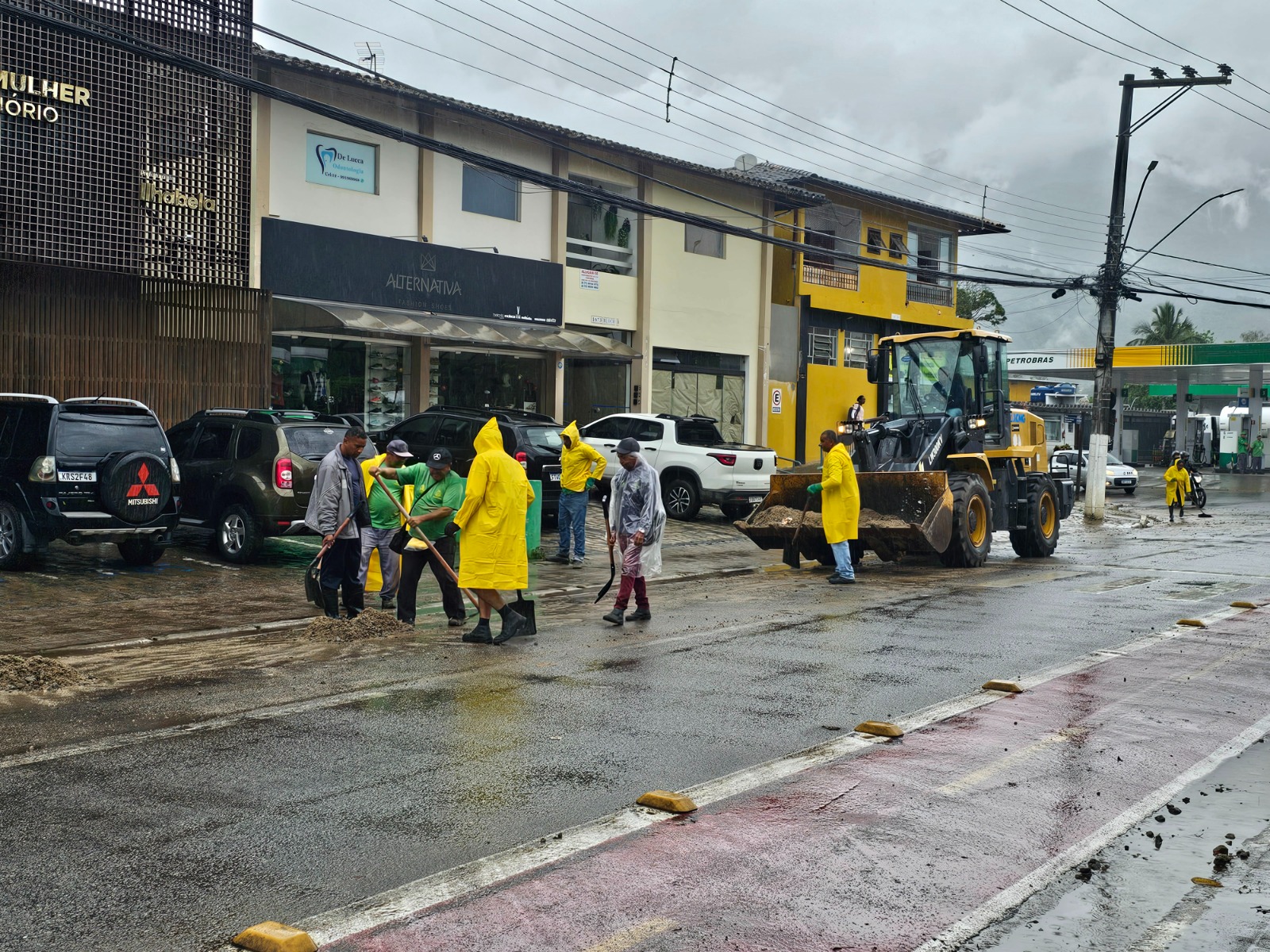 Equipes da Secretaria de Serviços Urbanos atuam de forma contínua na limpeza, desobstrução de vias e atendimento às ocorrências em toda a cidade. A Prefeitura, por meio da Defesa Civil, em conjunto com o Corpo de Bombeiros e voluntários, segue mobilizada, monitorando áreas de risco e prestando suporte à população.