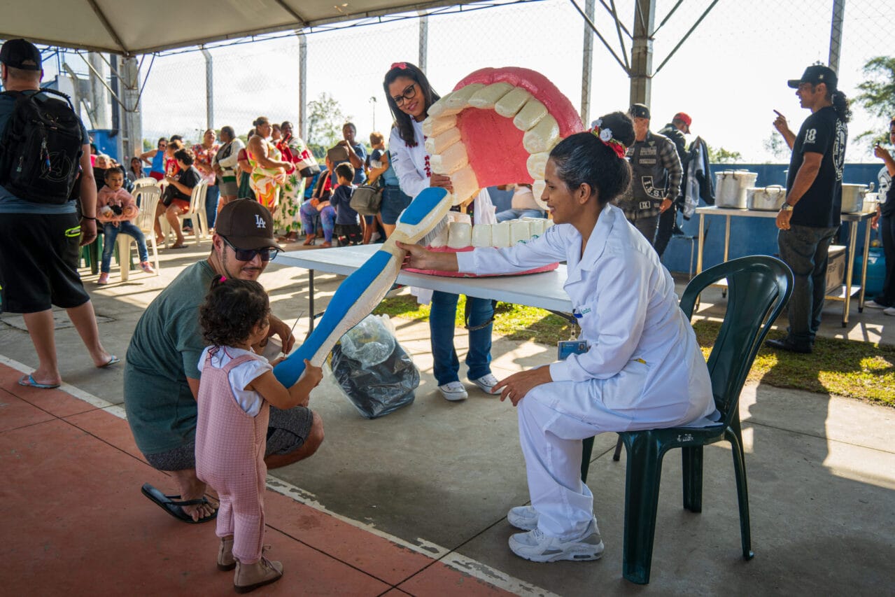 A campanha Agosto Lilás também esteve presente, que garantiu encaminhamentos e atendimentos voltados especialmente às mulheres. Além disso, a parceria com a Uniodonto possibilitou atendimentos de saúde bucal em um consultório móvel.