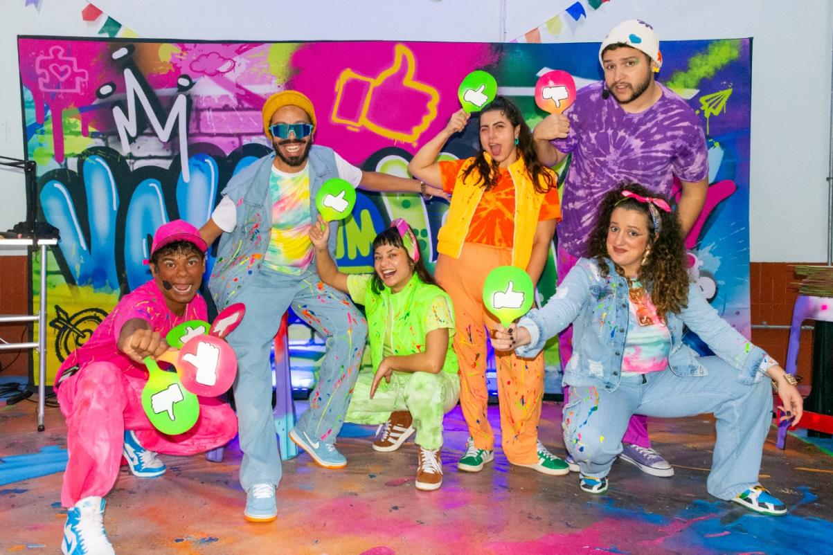 O projeto “Vale um like?” chega a Santos nos dias 12, 13 e 14 de agosto, com apresentações gratuitas e interativas voltadas ao público jovem. Logo no início do espetáculo, as crianças são convidadas a sortear, a partir de caixas temáticas, o assunto que será abordado em cena, previamente definido pela produção.